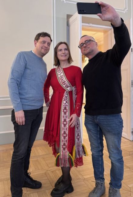 S. Javaitytė su kolegomis: portalo „Kas vyksta Kaune“ redaktoriumi Vaidu Pilkausku ir radijo LRT Klasika žurnalistu Andriumi Baranovu / L. Pilkausko nuotr.