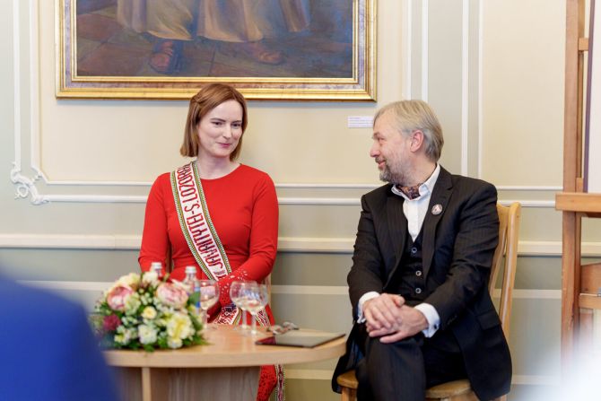 S. Lozoraičio premijos laureatė S. Javaitytė ir ceremonijos vedėjas D. Chmieliauskas / R. Tenio („Kas vyksta Kaune“) nuotr.